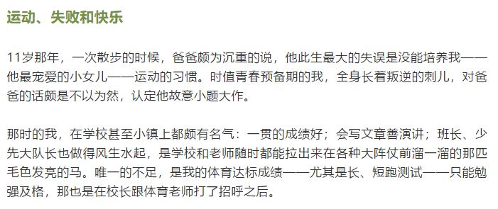 当时除了体育成绩不达标,其他一切都很棒。“从小拔尖儿,活在众人的完美期待中是件挺要命的事儿。长大后你总有一天会为此买单。”Toni说自己成年后的完美主义,无法接受期待与现实的落差,以及从28岁开始经历的抑郁症,多少都能追溯到小时候“好孩子的成长经历”。所以,她甚至刻意让女儿在小学时不要当尖子生。“那种从小被过度期待和过度关注的状态没什么好处,我更希望她在成长和学习中享受到自由和心有余力的感觉。学习成绩差不多就行了,没必要过度拔尖儿!”Toni 这两天刚看了一篇李银河老师的文章说“总想拔尖其实是个幼稚病”(点击阅读),她特别认同。
