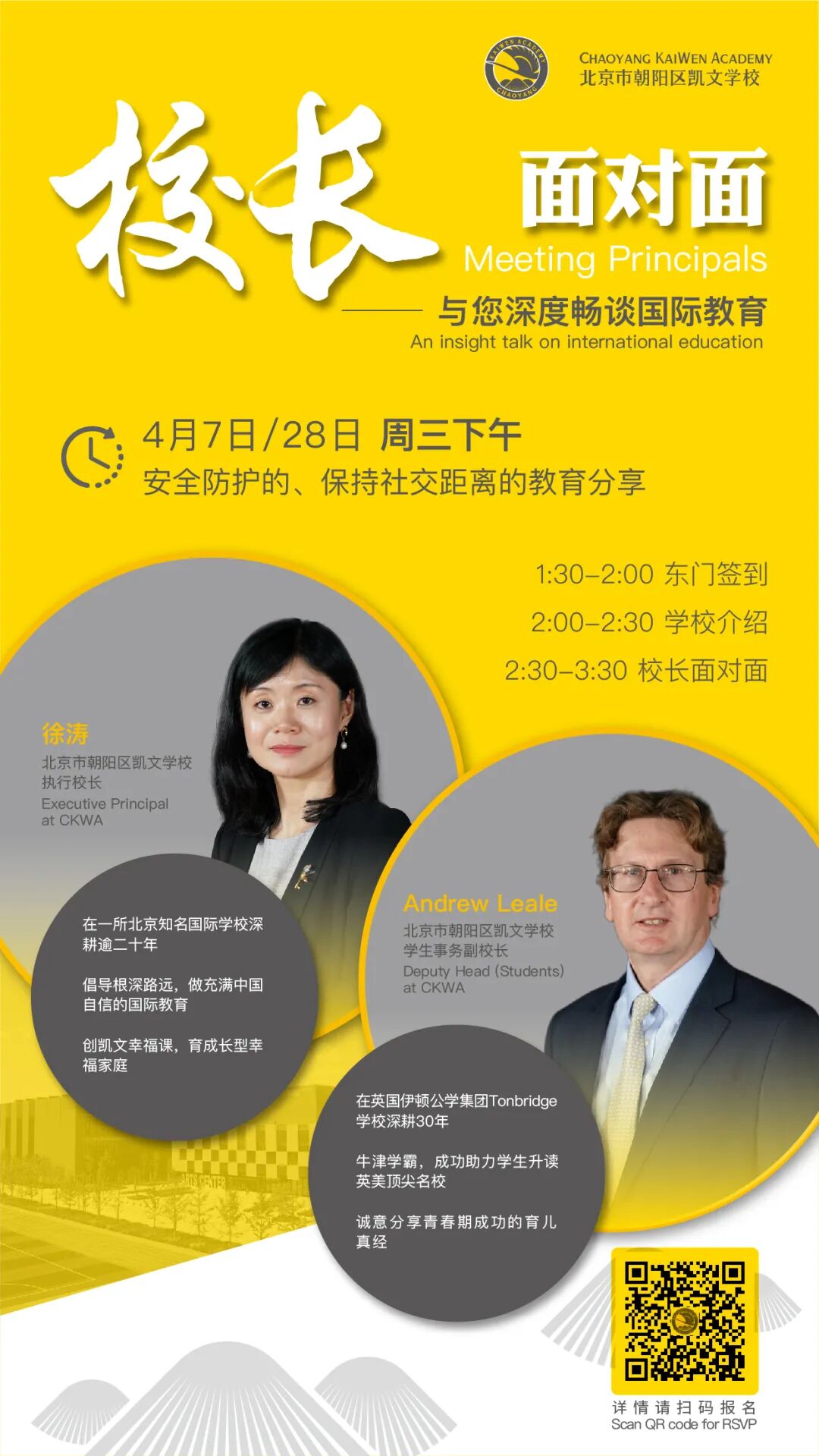 校长面对面,与您深度畅谈国际教育,3月31日下午将进行安全防护的、保持社交距离的教育分享