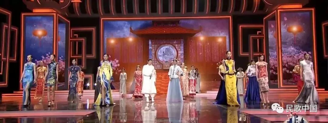伴随着霍尊的演唱,一群身着中国传统服装的演员陆续登场,为人们展现以苏绣、潮绣和云锦等顶级服饰所代表的韵味绵长、悠远醇厚的中华文化。