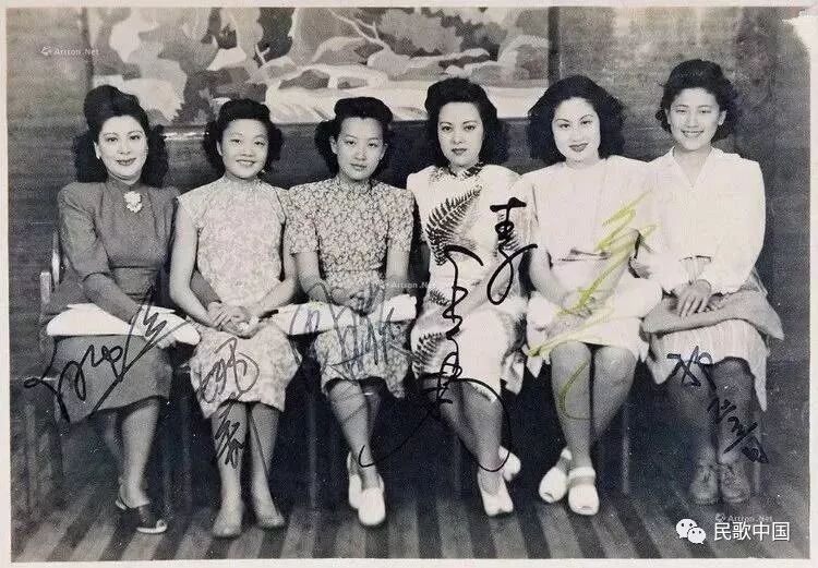 下面这幅老照片,是六位歌星的合影,从左向右依次是白虹、姚莉、周旋、李香兰、白光、吴莺音。照片上的六个人加上当时的“歌坛大姐”龚秋霞,正好就是当时上海滩媒体和听众评选出来的“上海滩七大歌后”。时至今日,她们那或甜美、或慵懒、或妖艳的歌声,依然是人们难以忘怀的存在。
