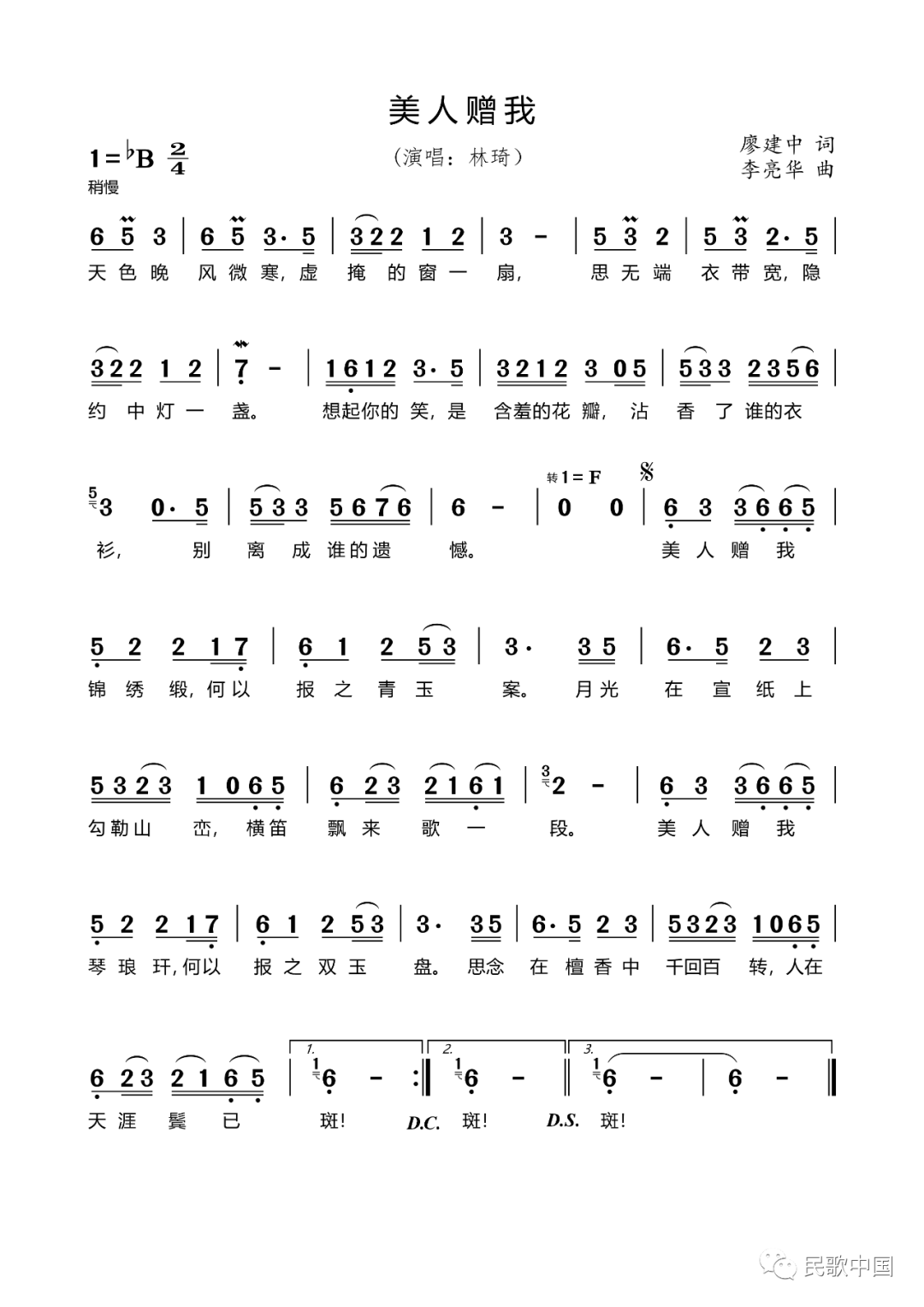 廖建中,中国音乐家协会会员。代表作有《故乡》(王丽达演唱),《我在江苏等你》(阎维文演唱),《天麻之恋》(祖海演唱),《苏州街游记》(冯提莫演唱),《月半望云山》(李玉刚演唱),《画绢》(周深演唱),《中华善歌》(徐千雅演唱),《天不语》(李雨儿演唱),《红船扬帆新时代》(刘和刚演唱),《我最亲最爱的祖国》(石倚洁演唱),《新翻身道情》(王二妮演唱)等。