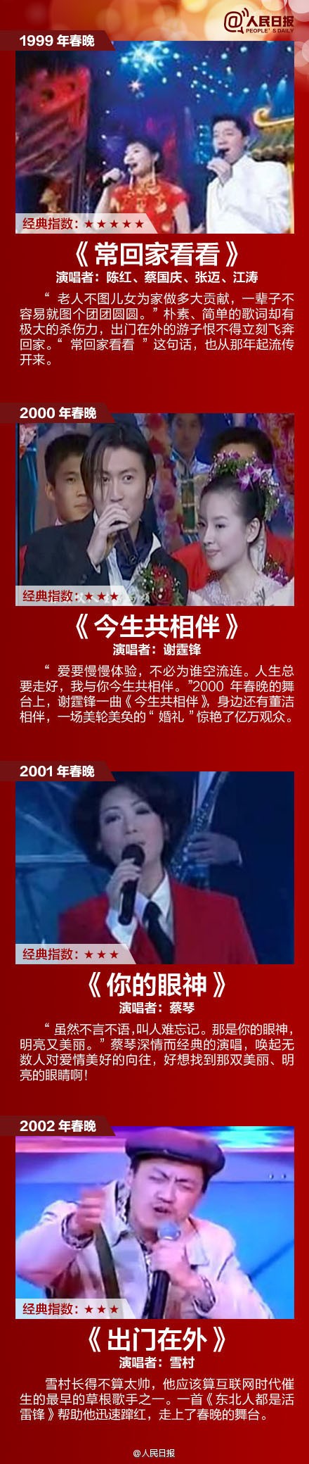 1984年《我的中国心》;1987年《冬天里的一把火》;1998年《相约九八》;2012年《因为爱情》……32年春晚,32首金曲,满满都是回忆!哪一首打动过你?