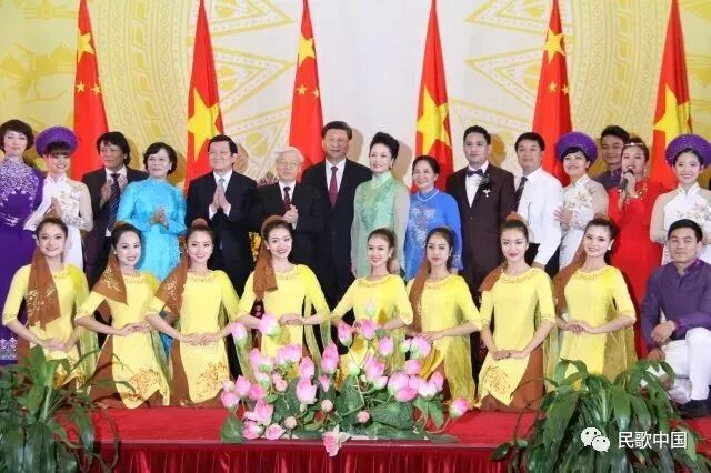 资料图片:杜氏清花(二排右二)为中越双方领导人演唱