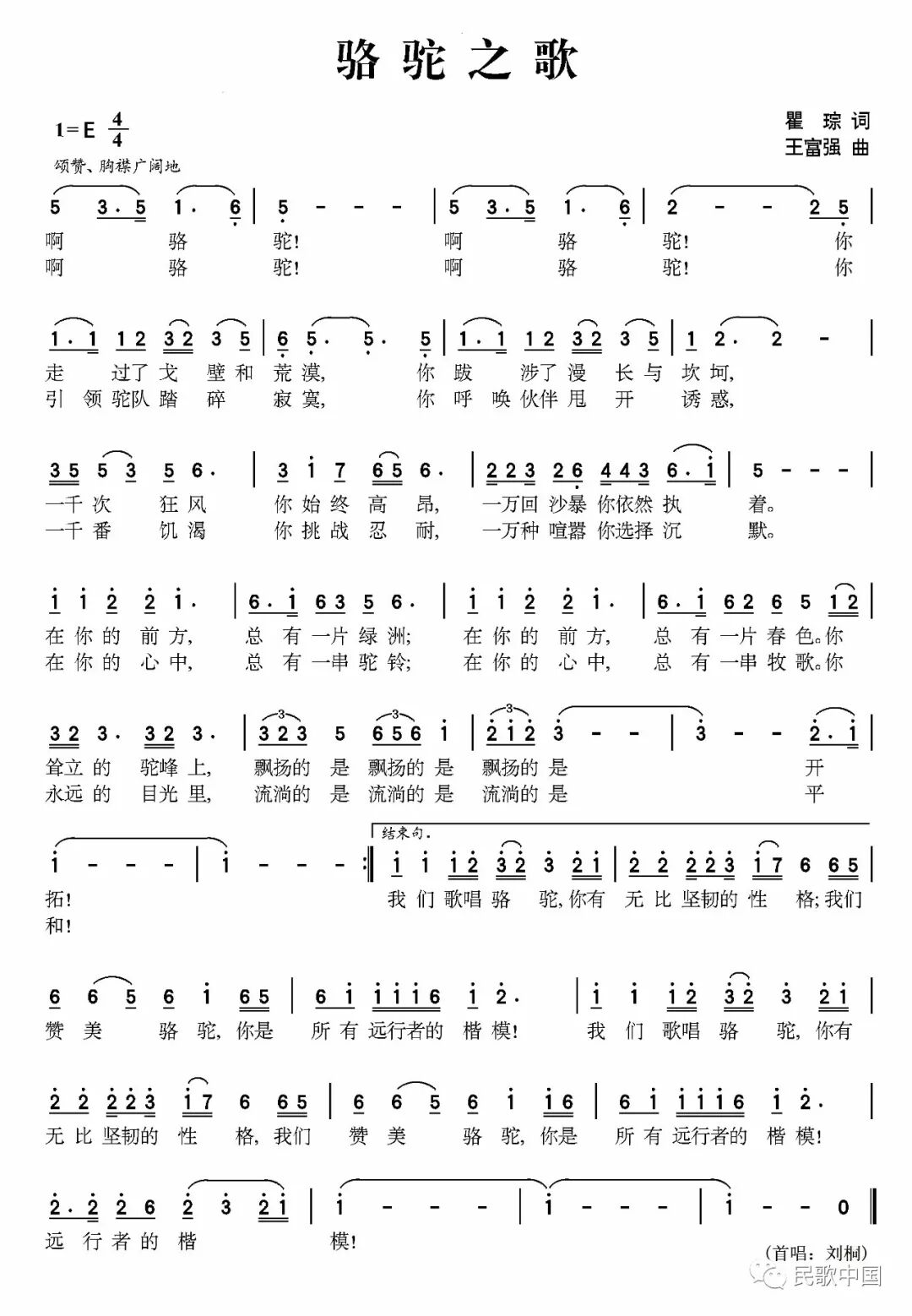 “我们歌唱骆驼,你有无比地坚韧的性格,我们赞美骆驼,你是所有远行者的楷模……《骆驼之歌》是著名词作家瞿琮与著名作曲家王富强联袂推出的,由青年女高音刘桐演绎的一首作品。