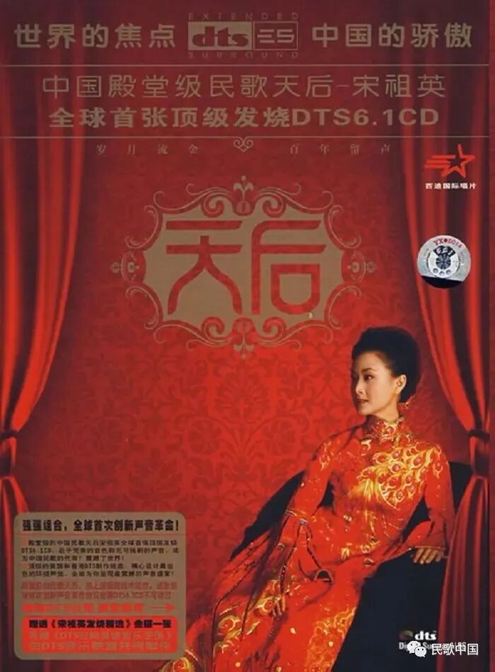 2007年,宋祖英曾发布一张堪称“全球首次创新声音革命”的专辑,名字就叫——“天后”。《渔家姑娘在海边》《映山红》《小扁担三尺三》《天涯歌女》《婚誓》《我们的生活充满阳光》《绒花》《我的祖国》……该专辑共收录14首歌曲,均为在国内传唱多年的经典影视插曲,曲目与2005年推出的《百年留声》相同。