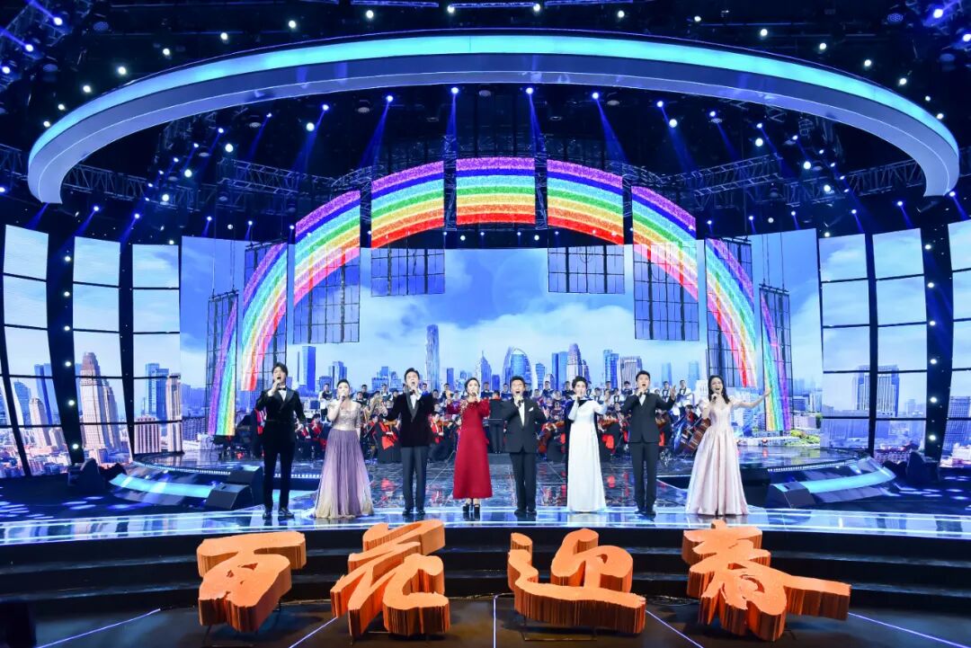 今年的大联欢以“阔步新征程 百花向未来”为主题,分为时代歌声、人民心声、中国回声三个篇章。总导演由赵梦燃担任,300多位文艺家登台献艺、共贺新春。