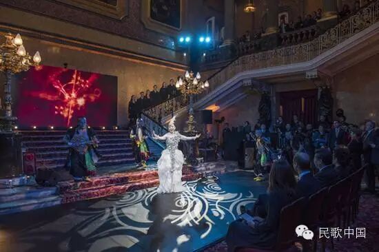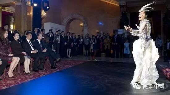 在英国兰卡斯特宫金碧辉煌的殿堂中,萨顶顶把中国的东方艺术与英国的西方的经典相融合,又将现代的舞美表现与流传于民间的原生态表演相结合,于是,时间与空间在萨顶顶的艺术表现中自由地穿梭和碰撞,作为习主席出访英国期间的唯一一个歌舞表演节目,萨顶顶用中西结合的方式,以十足的艺术自信向世界展示了东方文化的魅力。