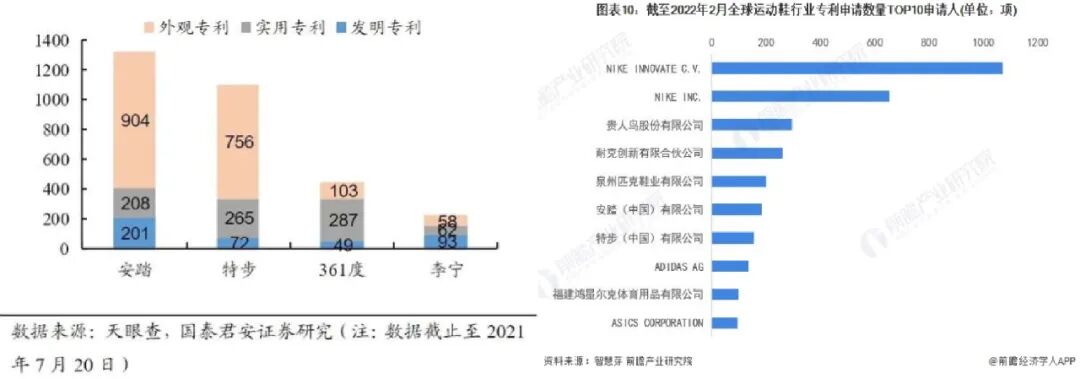 而截至2022年2月,在全球运动鞋行业专利申请数量上,李宁已经不在top10行列了。