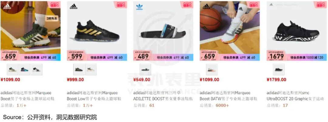 比如,阿迪达斯2013年推出的boost科技,起初用于ultraboost、椰子等明星鞋款上。之后该技术下放,目前从跑鞋到拖鞋,价位从500—2000都有boost科技相应的布局,从销量看,很多都卖得不错。