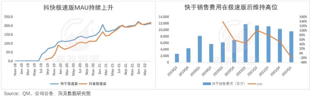 这里早已经有耕耘者的身影:通过简单粗暴的现金补贴,抖音、快手极速版相迅速打开了下沉市场,数据显示,2021年底,二者MAU分别较上年同比增长76%和36%。