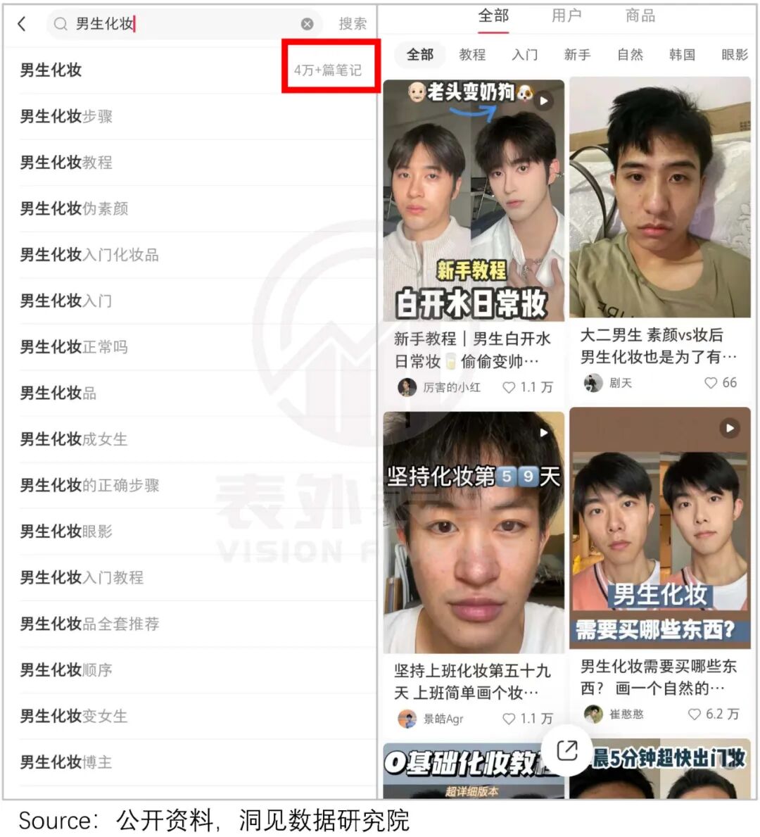 如此风口,正好又是小红书核心品类,当然要“收割”一波:在小红书上,关于男性化妆的笔记已经突破4万篇。