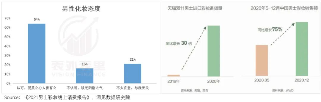 例如,近年来,男性用户对美妆愈发感兴趣,根据CBNData消费站发布《2021男士彩妆线上消费报告》,只有16%的男性不认可男性化妆,且电商平台中男性彩妆的备货量和销售额也逐年上升。