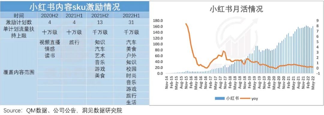 可以看到,小红书内容SKU的扩张,直到今年才进入爆发阶段;用户规模上,也还处于飞速增长时期。