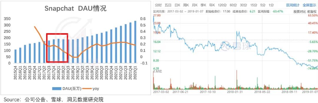 “我们的酷劲完蛋了!”产品设计偏离年轻人需求,Snapchat一时恶评如潮,很快被用户无情抛弃,股价也一路走低。