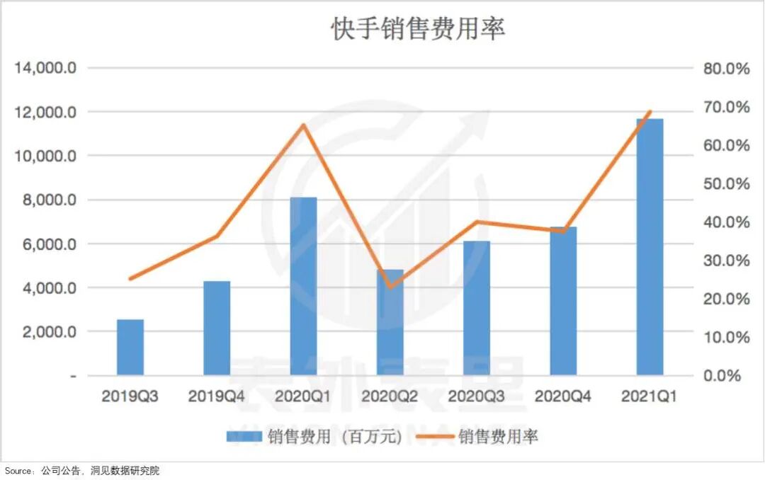 同样的问题也存在于快手身上——据快手财报披露:2021Q1销售费用的增加,就主要用于快手极速版的推广。