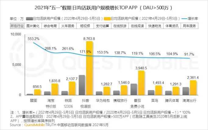 此外,据QM数据,今年五一期间,同样都采取了红包攻势,但抖音和快手在同比增速上,却有较大差距。