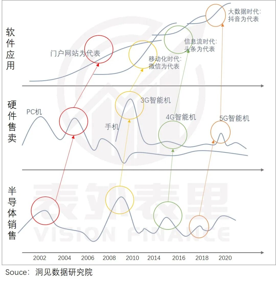 不仅半导体到硬件的传导如此,下一环应用端也是类似情况。
