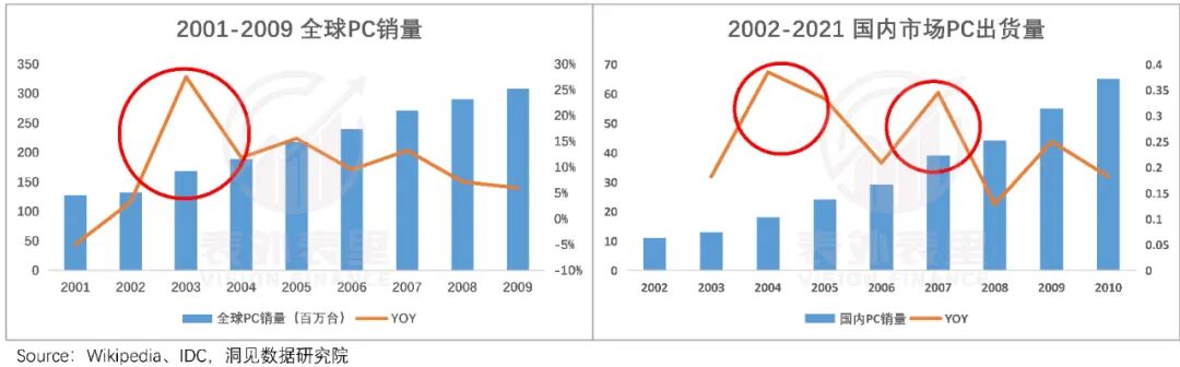 上游备货供给充足,匹配下游新产品功能迭代性强、换机需求强烈,全球PC销售市场滞后半导体周期1年,也在2003年迎来销量高峰。