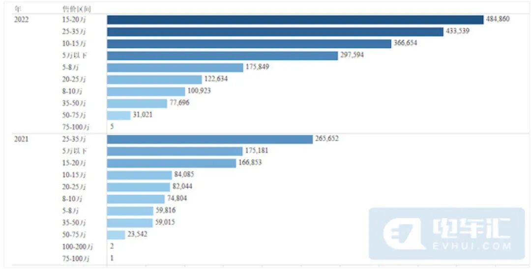 也就是说,15-20万这一价格区间是当下新能源汽车空间最大的市场。
