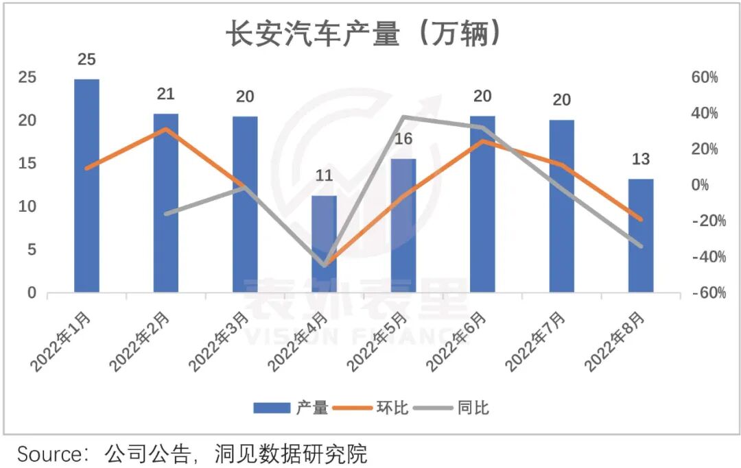 从数据看,影响确实存在。据长安公告,川渝生产基地实施限电停产,预计8月产销目标减量约10万。这意味着,减产数直接达到长安汽车7月总产能的50%。