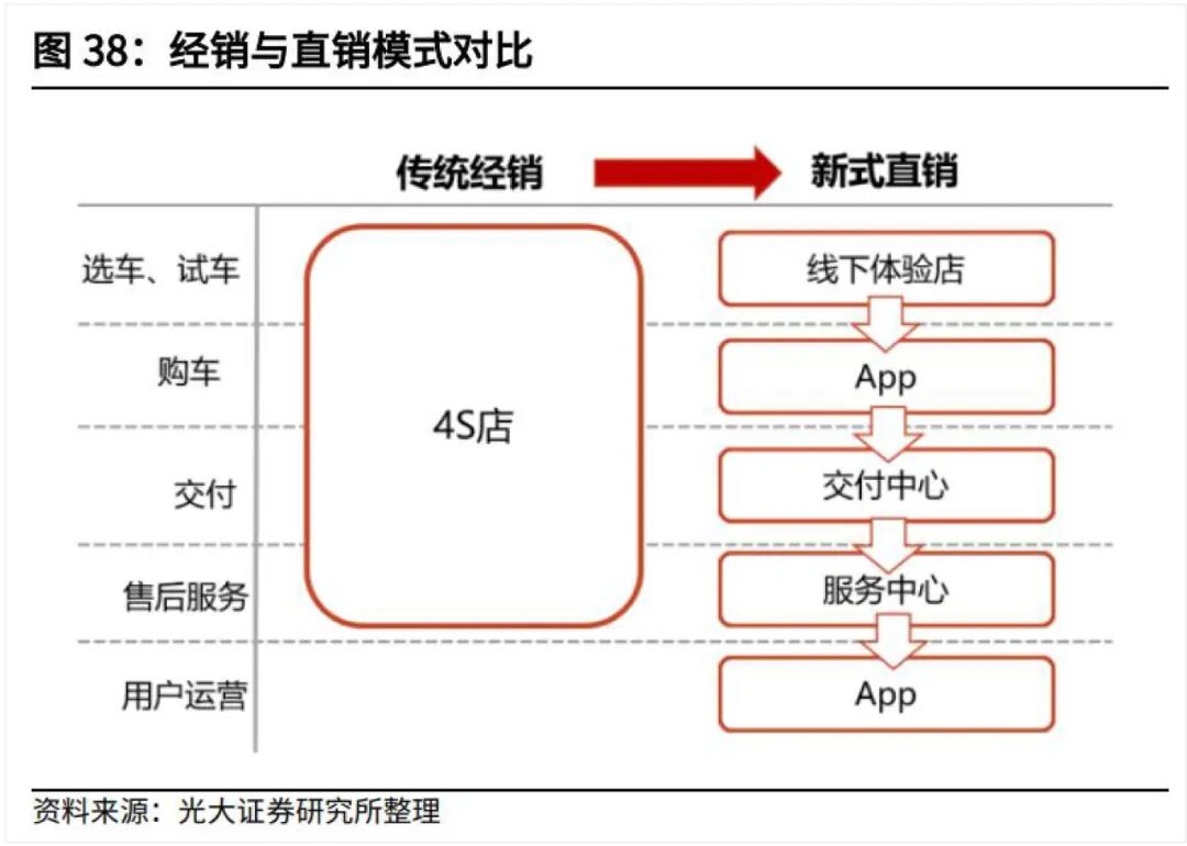 具体来说,新的模式将传统4S点解构为订单中心,交付中心,维保中心,仓库中心等5个中心,这样的模式可以在实现增加与客户触点的同时,让用户有更好的体验。