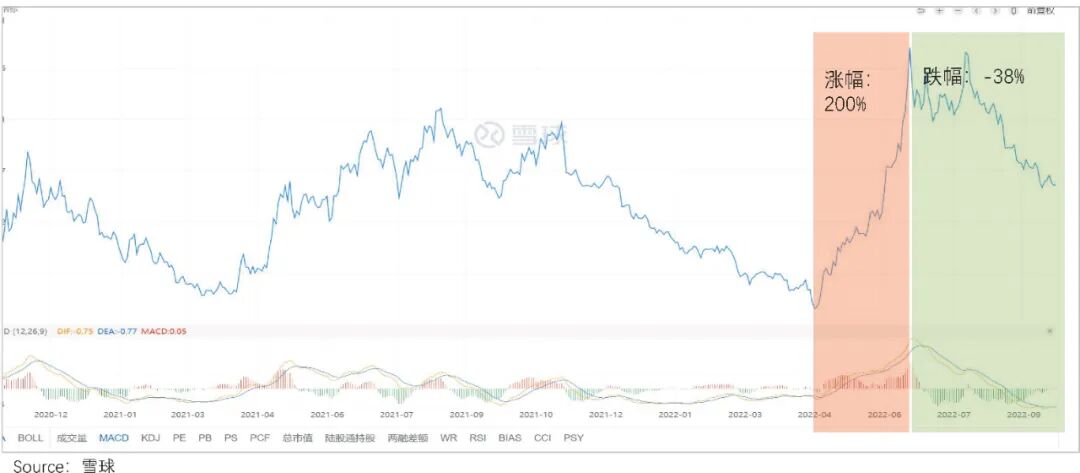 今年4月-6月,长安汽车股价曾经历过一波暴涨,从7块一直涨至20块多,涨幅达200%。