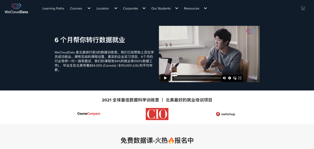 在美国著名的CIO杂志和加拿大的CourseCompare网站,WeCloudData也是排名前5的Bootcamp。