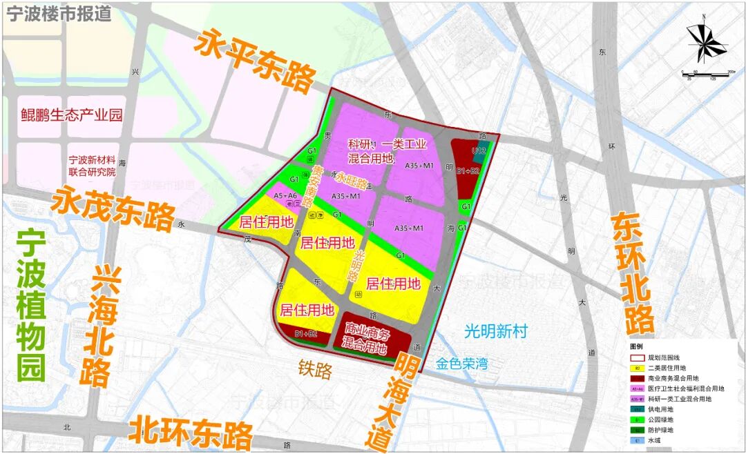规划指出,光明地段位于宁波科创发展核心主廊上,是新材料科技城核心区的重要组成部分,更是甬江科创大走廊南北科创功能轴线上的重要节点。