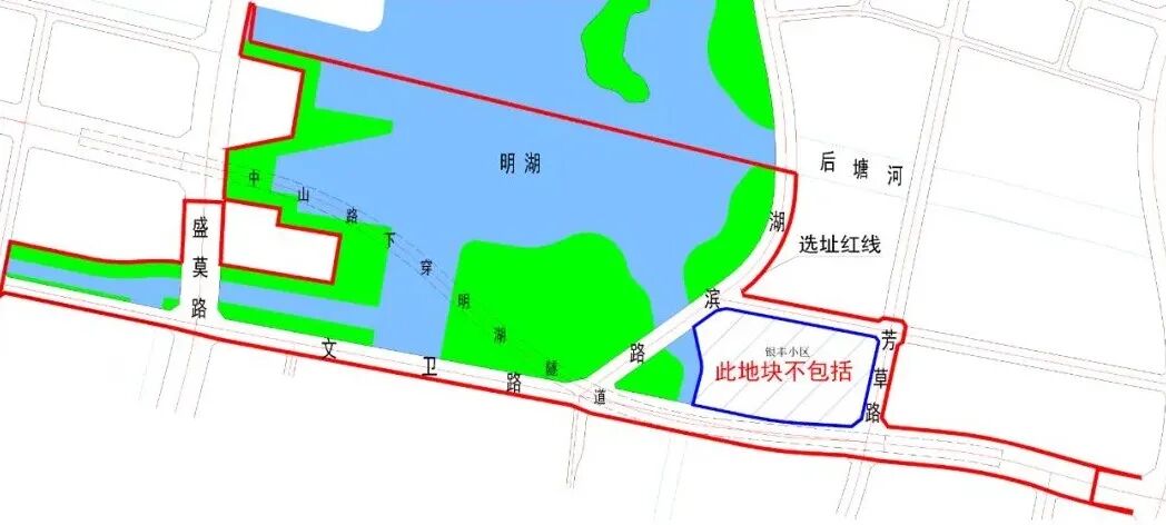 明湖南区工程红线范围图示。点击可放大查看