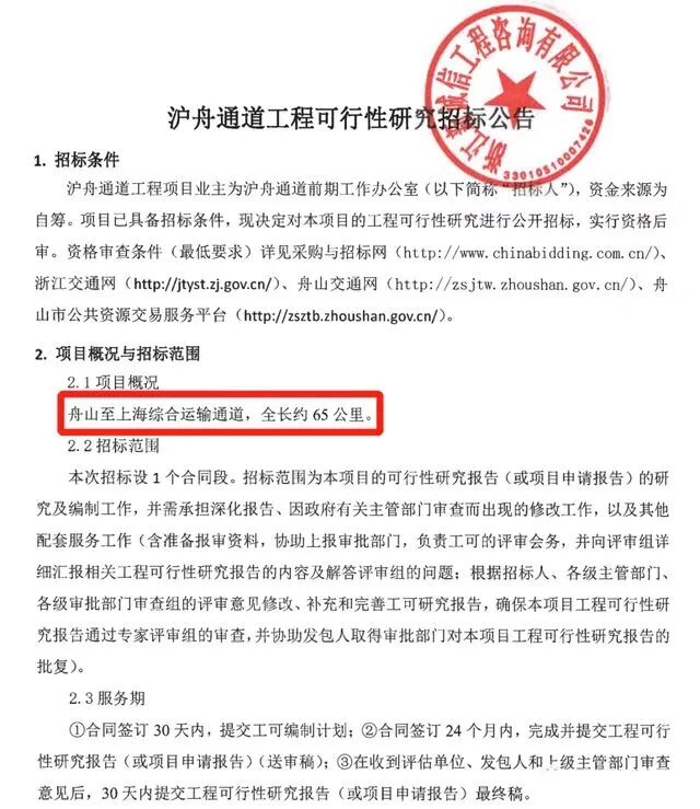 日前,舟山市交通局官网发布招标公告,将组织相关单位对沪舟通道工程(又称:沪舟甬跨海大通道)开展可行性研究以及涉海工程勘测、航道通航条件影响评价等专题研究。