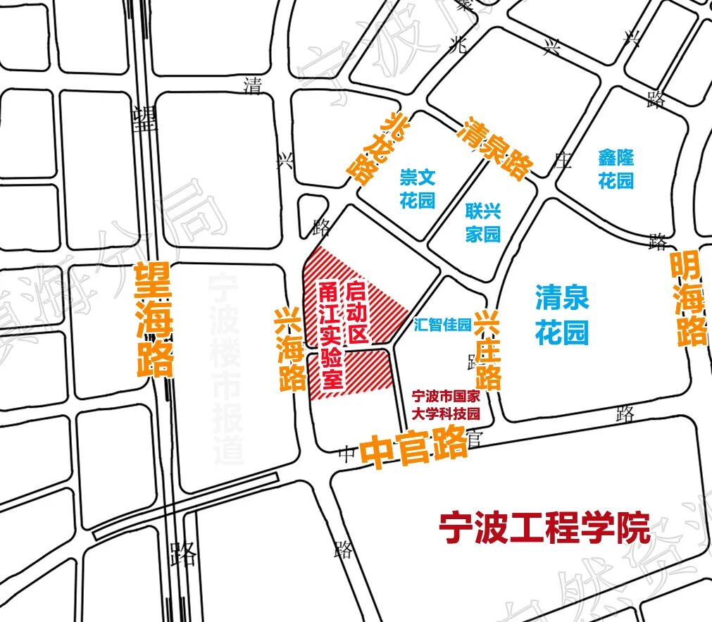 目前,甬江实验室启动区已开建,计划2024年上半年建成投用,其大致位于兴海路与兆龙路交叉口东南侧、宁波市国家大学科技园西侧。