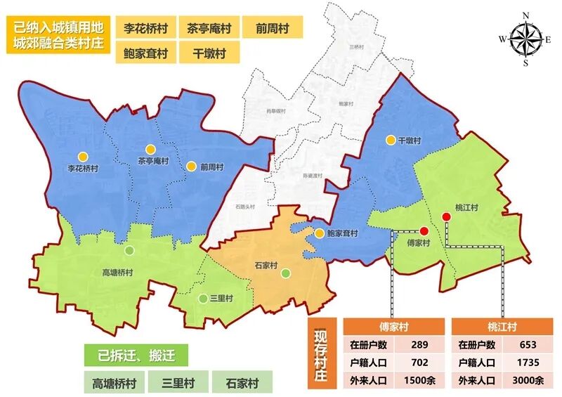 李花桥村、茶亭庵村、前周村、鲍家耷村、干墩村、高塘桥村、三里村、石家村、傅家村、桃江村。