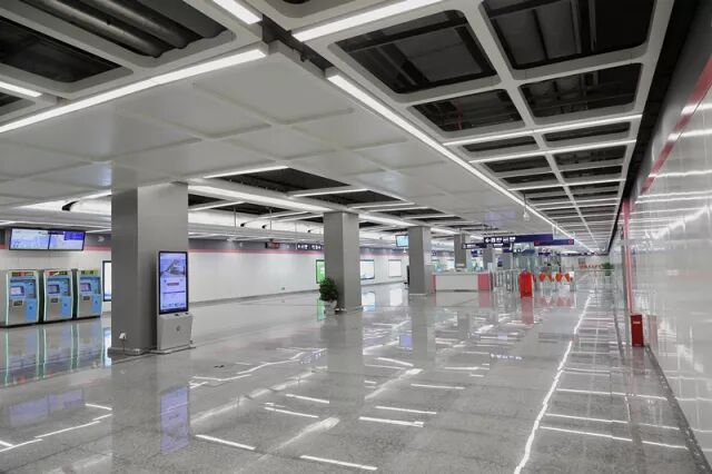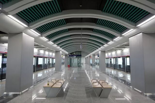 位于禄口国际机场东部,为地下二层岛式站台结构设2个出入口。