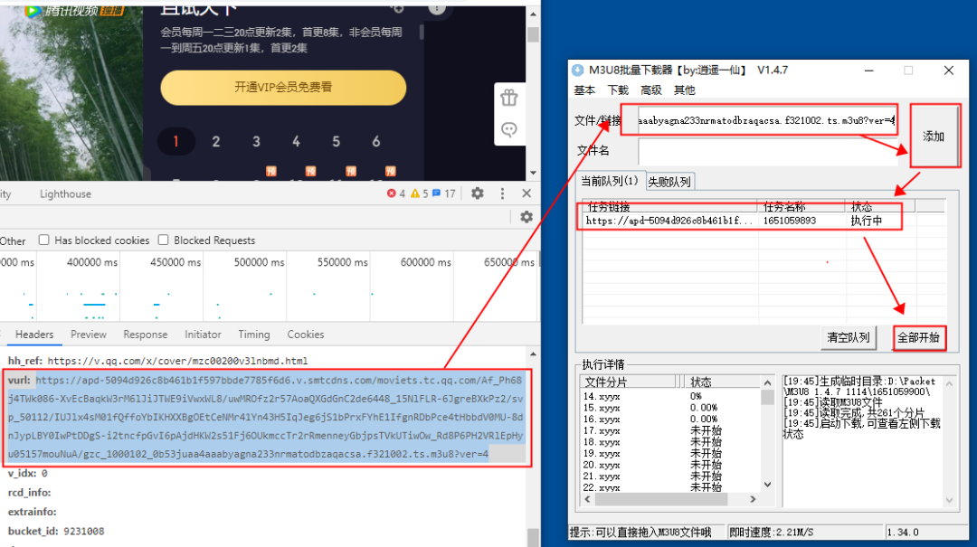 Step3:使用基于FFmpeg的M3u8下载小工具即可完成下载。