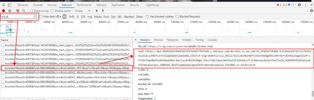 Step2:搜索M3u8的请求链接,并分析得到M3u8索引文件。
