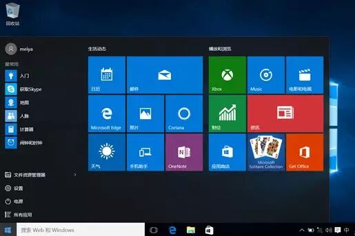 开始菜单:Windows 10相比较于Windows 8来说最大的修正就是重新让开始菜单出现在了屏幕的左下方。不过与传统的开始菜单不同,Windows 10的开始菜单除了保留之前的特性外,还将Windows 8系统的磁贴元素融入到了其中。磁贴界面在原有磁贴概念的基础上进行了大幅度的调整,新的磁贴界面开始支持纵向滚动,并可以利用开始按钮呼出全部应用的菜单。