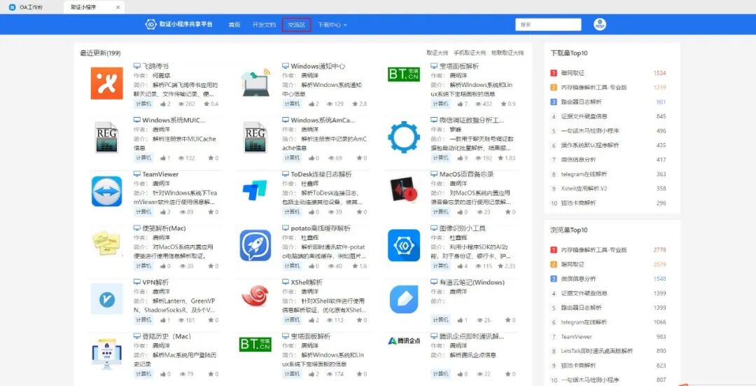 除了应用程序数据提取,还可利用取证小程序在取证过程中常用的实用小工具,扩展取证软件本身的功能;也可使用已有的数据获取接口,读取已提取到的数据进行研判分析,实现数据分析功能。未来取证小程序将会持续扩展新接口,以便用户能快速实现完全自定义的取证功能和取证流程。在此,欢迎广大用户参与进来,共同建设取证小程序生态圈!对于美亚杯小程序解题和取证小程序大赛若还有疑问,欢迎至神机小程序共享平台交流区进行提问。通过取证软件入口进入【神机小程序共享平台】-点击【交流区】-进行提问通过钉钉入口进入【神机小程序共享平台】-点击【交流区】-进行提问