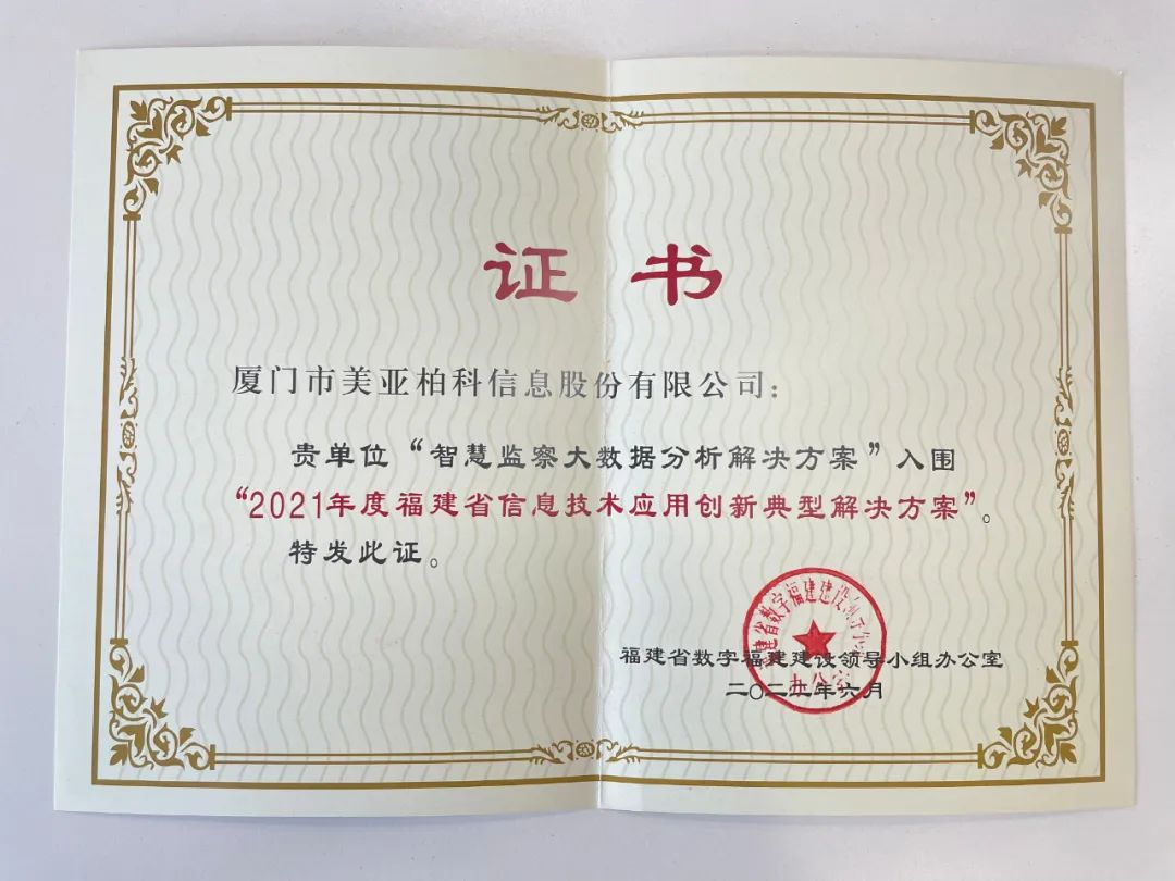 2022年3月17日,美亚柏科“蓝海红帆”党建品牌及“福建省新时代党建品牌、优秀案例征集”活动筛选结果公布。美亚柏科党建品牌案例《中共厦门市美亚柏科信息股份有限公司委员会:“蓝海红帆”助力公司健康发展》从896个案例中脱颖而出,成功入选。(点击了解详情)