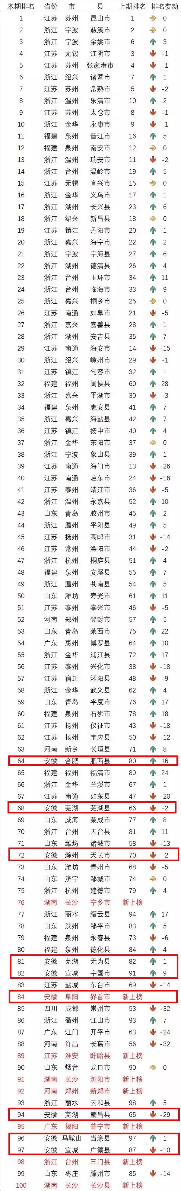 “中国创新百强县”榜单