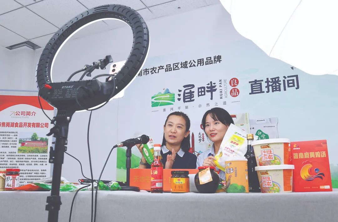 在“农管家”的运作下,淮南市将以“淮畔良品”为注册商标的特色农产品推向市场。直播间内带货主播正忙得不亦乐乎。摄影/ 程 兆