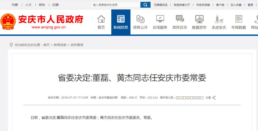 据安庆市人民政府网7月25日消息,日前,安徽省委决定: