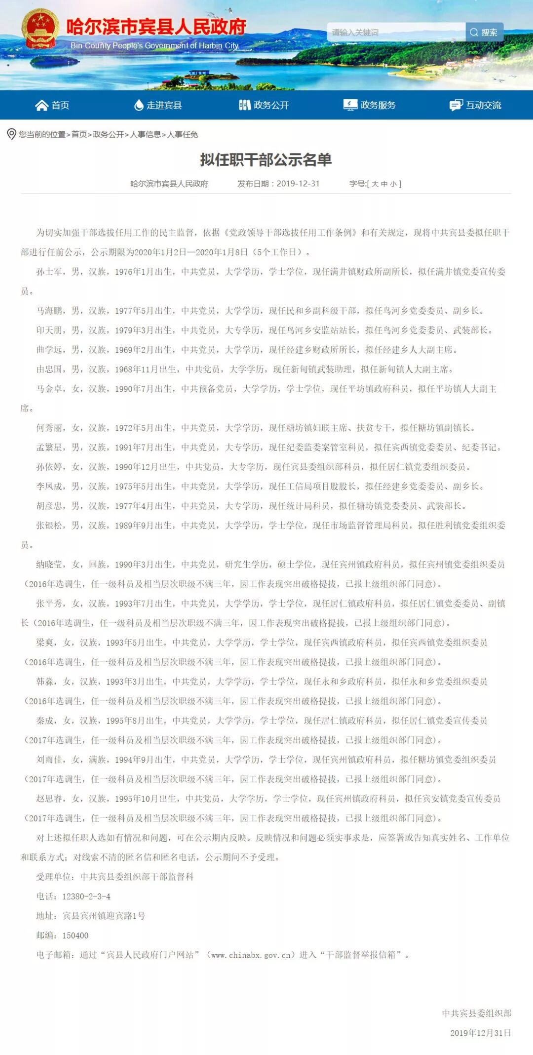 其中,生于1993年的张平秀,现任宾县居仁镇政府科员,拟任居仁镇党委委员、副镇长。
