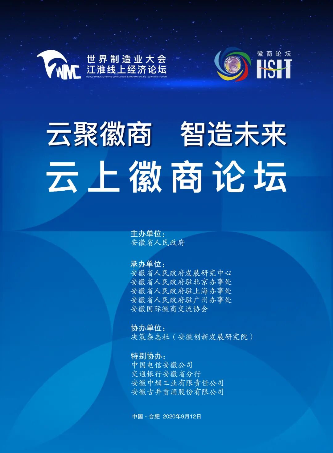 9月12日,世界制造业大会江淮线上经济论坛将在安徽合肥举办,大会论坛设置了云开幕、云论坛、云展示、云签约等“四朵云”活动。作为今年8场云论坛中,唯一冠名“徽商”的专项活动,云上徽商论坛也将同日在合肥举办。