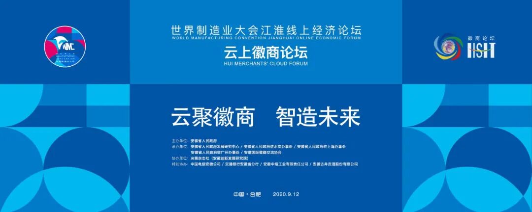 9月12日,世界制造业大会江淮线上经济论坛 · 云上徽商论坛将在合肥隆重举行。