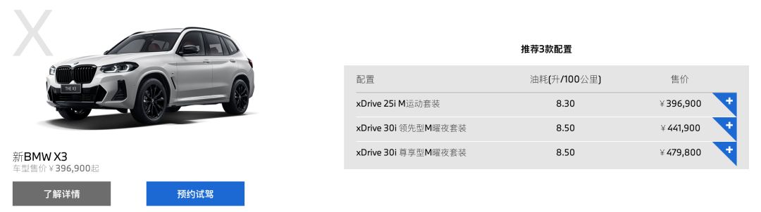 具体来看,宝马X1 sDriver20Li尊享版售价为30.28万元,sDriver25Li尊享版售价为34.38万元,而目前两款车型的售价分别为29.88万元、33.38万元。宝马i3仅有一款车型在售,目前售价34.99万元,信息显示涨价后的售价为35.39万元。宝马X3 xDrive25i M运动套装售价为39.96万元,xDrive30i领先型M曜夜套装为44.39万元,xDrive30i尊享型M曜夜套装为48.69万元,而目前三款车型的售价分别为39.69万元、44.19万元、47.98万元。另外,宝马iX3涨价后售价为40.50-44.50万元,而目前该车型售价为39.99-43.99万元。