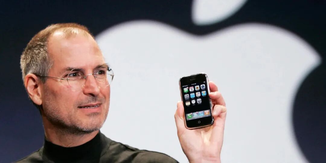 然后历史性的时刻到来了。2007 年 1 月,乔布斯发布第一代 iPhone,全触屏设计,正面只有一个 Home 键。6 月底,iPhone 正式在美国上市,果粉纷纷排队抢购。