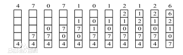 还可以利用一个特殊的栈来保存当前使用的各个页面的页面号。每当进程访问某页面时,便将该页面的页面号从栈中移出,将它压入栈顶。因此,栈顶始终是最新被访问页面的编号,而栈底则是最近最久未使用页面的页面号。假定现有一进程所访问的页面的页面号序列为: