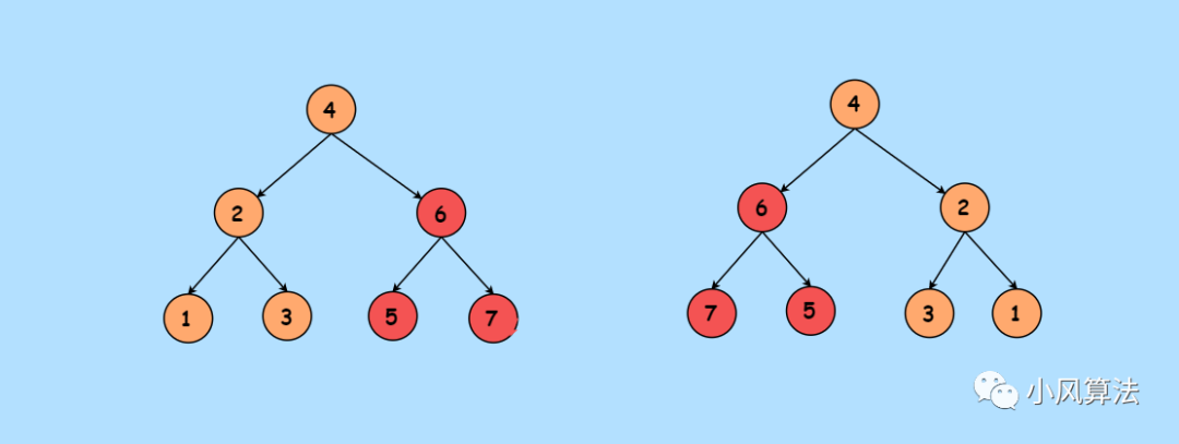 今天给大家讲解一道微软一面的算法题,也是LeetCode第226号题目,反转二叉树,就像这样: