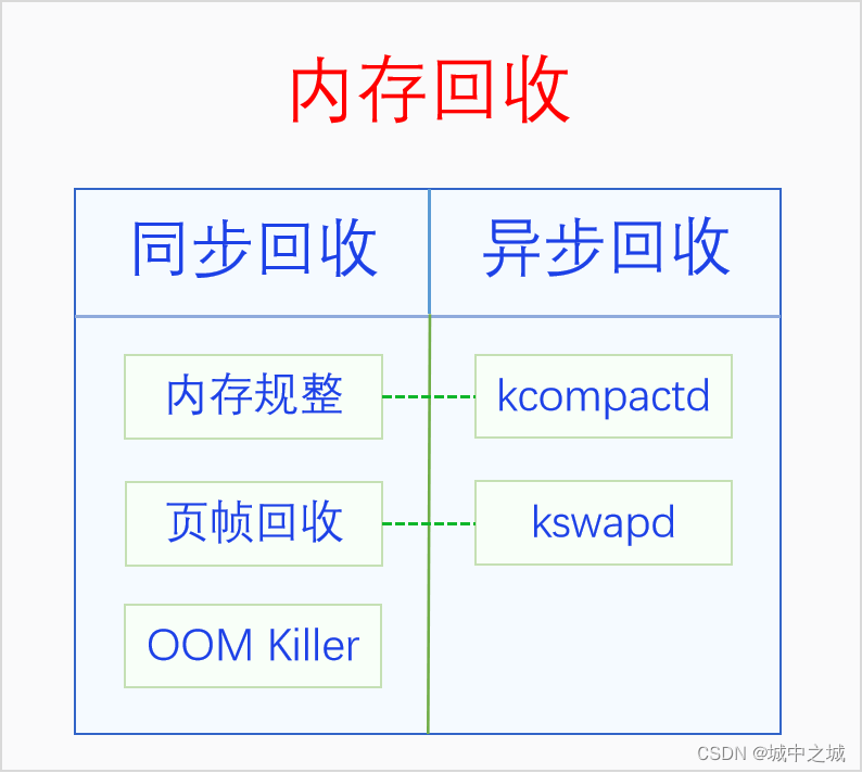 内核还有三个内存压缩技术zram、zswap、zcache,图里并没有画出来。它们产生的原因并不相同,zram和zswap产生的原因是因为把匿名页写入swap区是IO操作,是非常耗时的,使用zram和zswap可以达到用空间换时间的效果。zcache产生的原因是因为内核一般都有大量的pagecache,pagecache是对文件的缓存,有些文件缓存暂时用不到,可以对它们进行压缩,以节省内存空间,到用的时候再解压缩,以达到用时间换空间的效果。