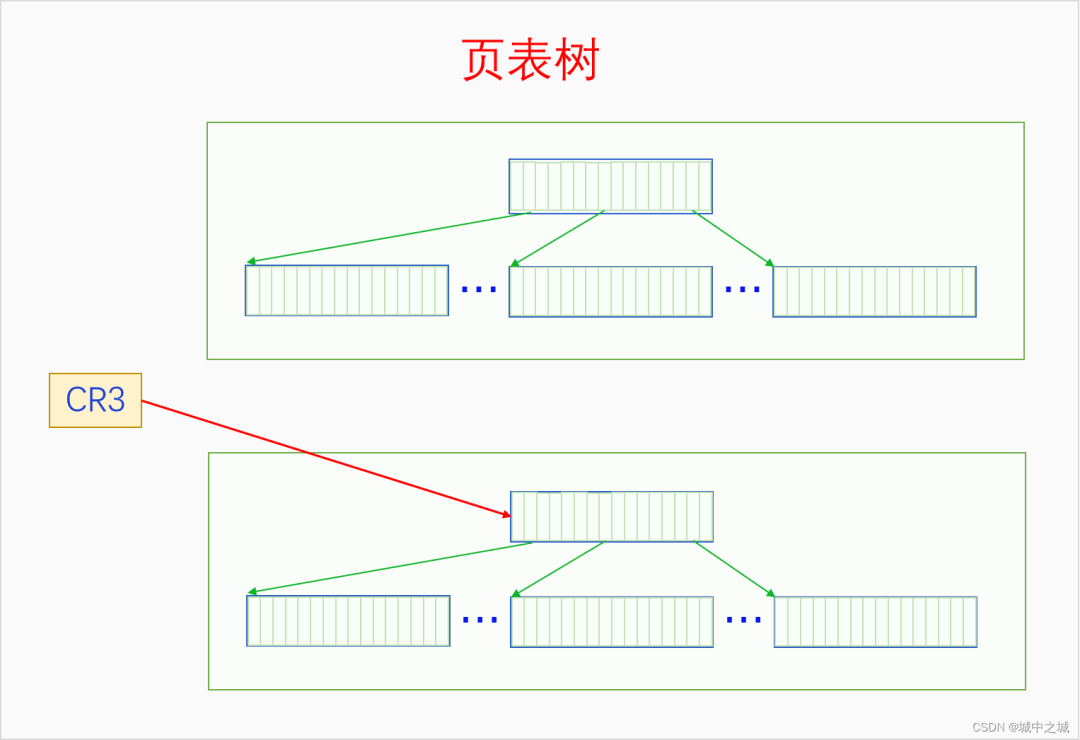 物理内存的这些操作都是在内核里进行的,但是CPU访问内存用的并不是物理内存地址,而是虚拟内存地址。内核需要建立页表把虚拟内存映射到物理内存上,然后CPU就可以通过MMU用虚拟地址来访问物理内存了。虚拟内存地址空间分为两部分,内核空间和用户空间。内核空间只有一个,其页表映射是在内核启动的早期就建立的。用户空间有N个,用户空间是随着进程的创建而建立的,但是其页表映射并不是马上建立,而是在程序的运行过程中通过缺页异常逐步建立的。内核页表建立好了之后就不会再取消了,所以内核是不换页的,用户页表建立之后可能会因为内存回收而取消,所以用户空间是换页的。内核页表是在内核启动时建立的,所以内核空间的映射是线性映射,用户空间的页表是在运行时动态创建的,不可能做到线性映射,所以是随机映射。
